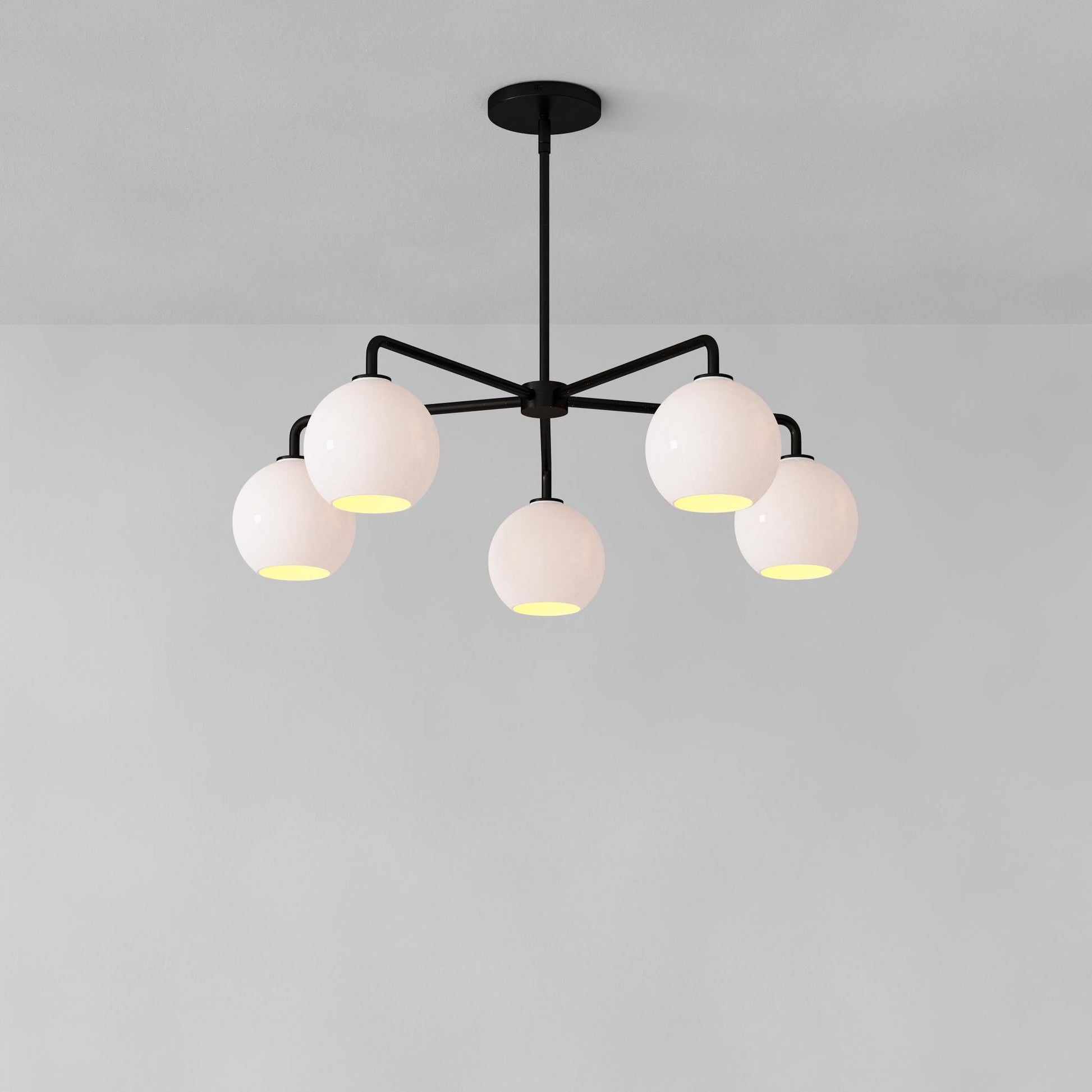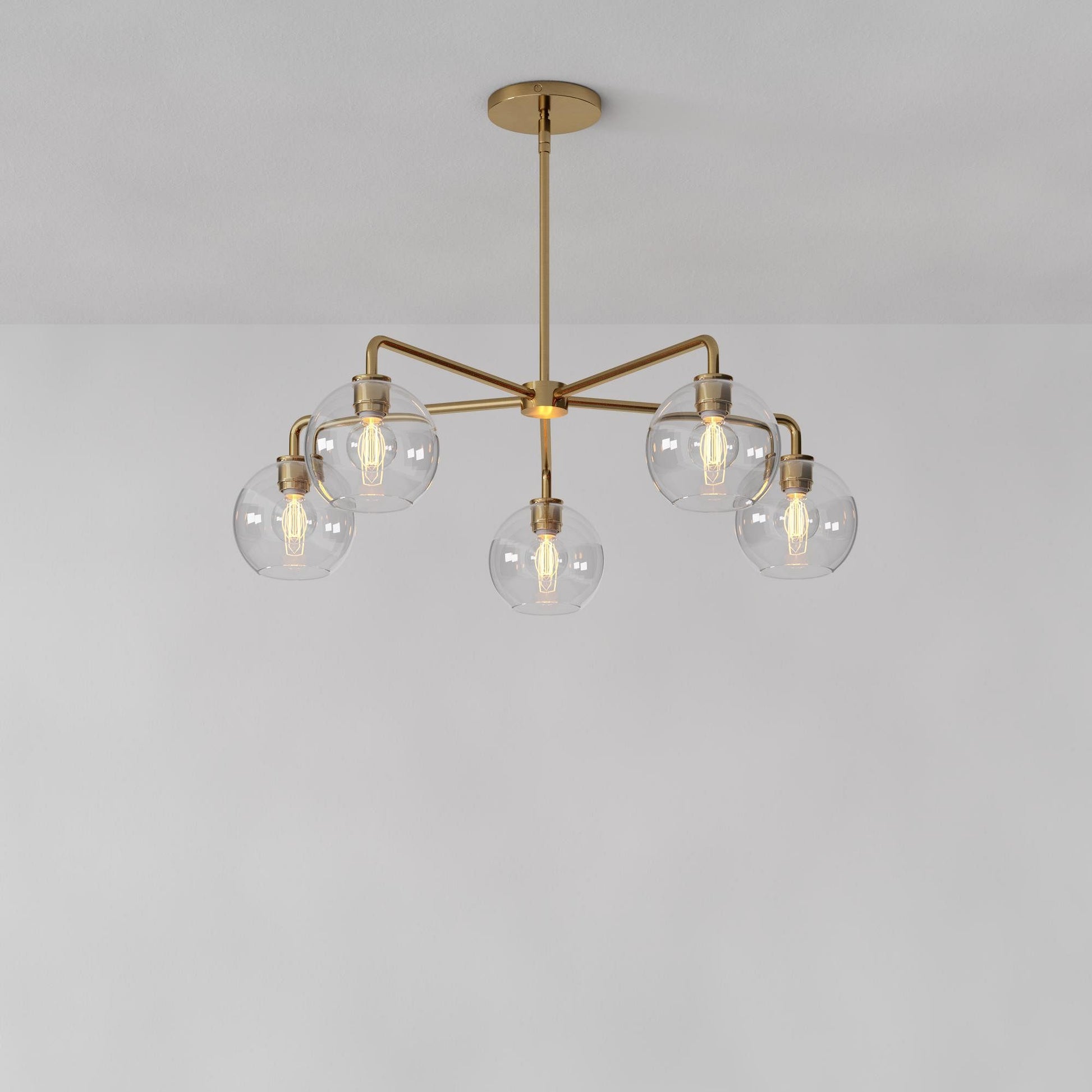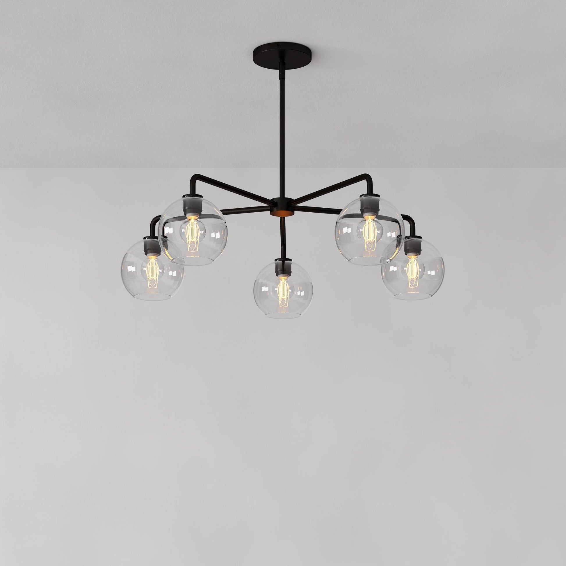 This 5-light sculptural globe chandelier is the perfect combination of contemporary design and functionality. Featuring sleek glass globes and a unique sculptural look, it creates a warm, inviting ambiance in dining rooms or living rooms, enhancing your home’s modern appeal.
